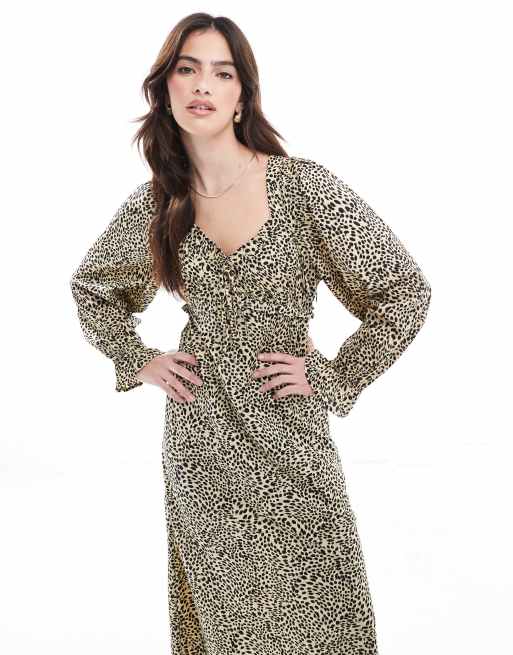 Wednesday's Girl - Guldfarvet midaxi-kjole med leopardprint i satin