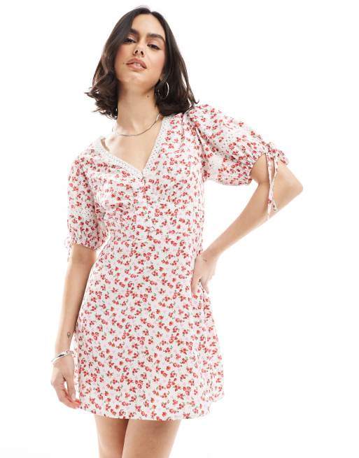 Wednesday's Girl - Hvid tea-minikjole med småblomstret print