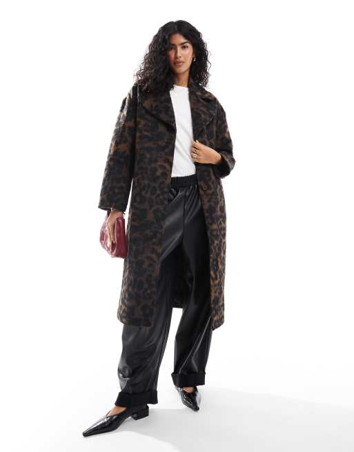 Wednesday's Girl - Mørkebrun cocoon-frakke med leopardprint