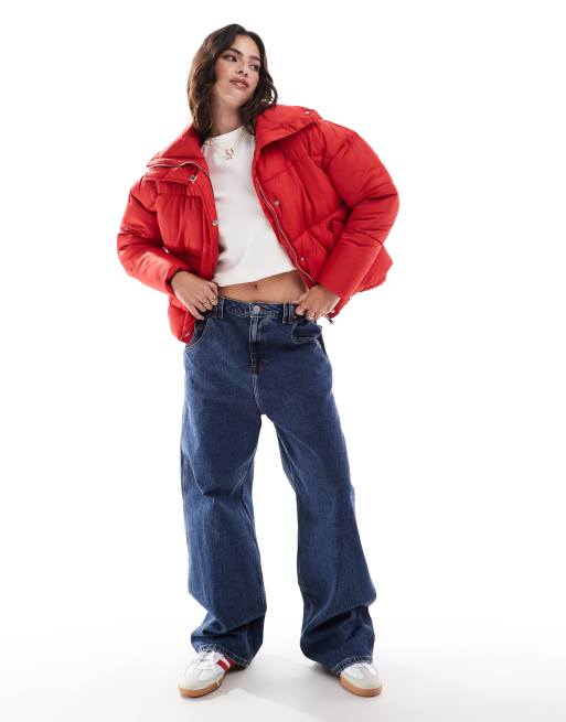 Wednesday's Girl - Rød dynejakke med oversized krave