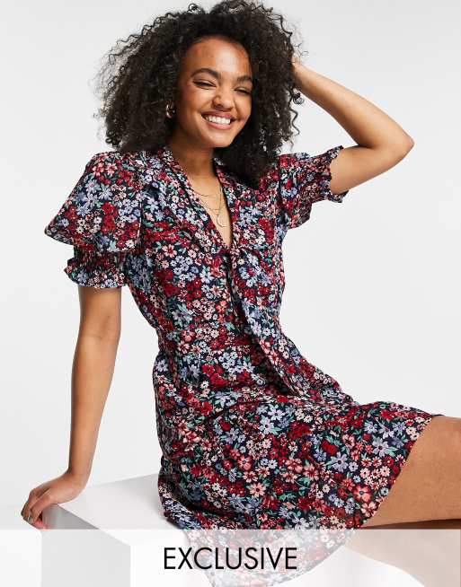Wednesday's Girl - Smock-minikjole med krave med bindebånd i blomstermønster