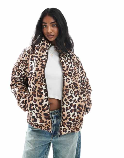 Wednesday's Girl - Vatteret bomber-jakke med brunt leopardprint