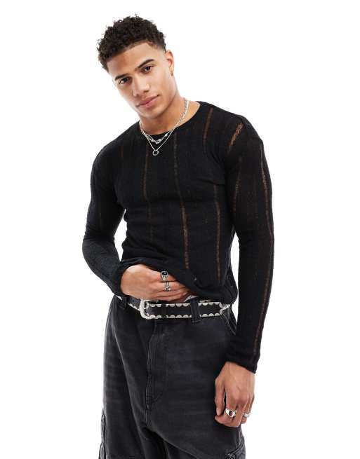 Weekday - Aggy - Festival - Langærmet Slim Fit-overdel i sort gennemsigtigt strik