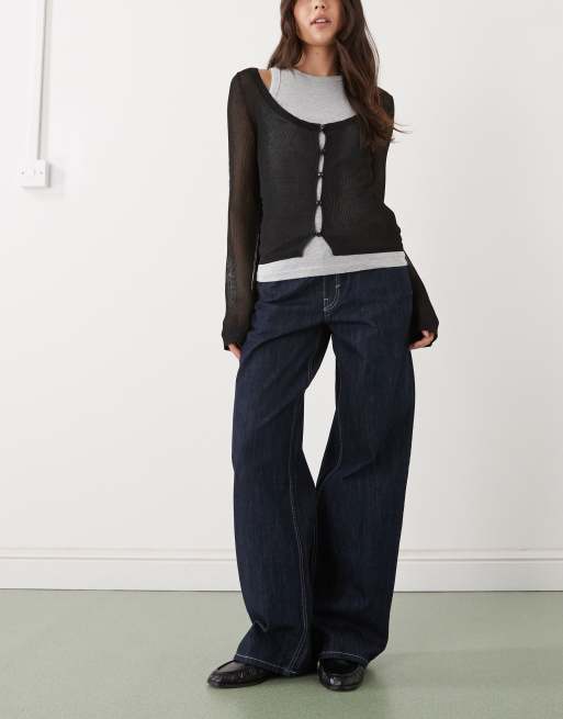 Weekday - Ample - Lavtaljede jeans med poset pasform i mørkeblå vask