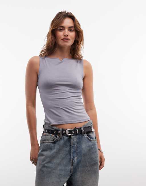 Weekday - Annie - Grå superblød tanktop med bådudskæring - Kun hos ASOS