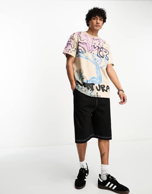 Weekday - Beige oversized T-shirt med "super alien"-grafik