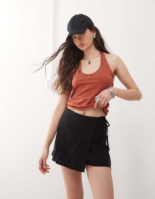 Weekday - Circee - Sort slå-om-mininederdel i hørblanding - Kun hos ASOS