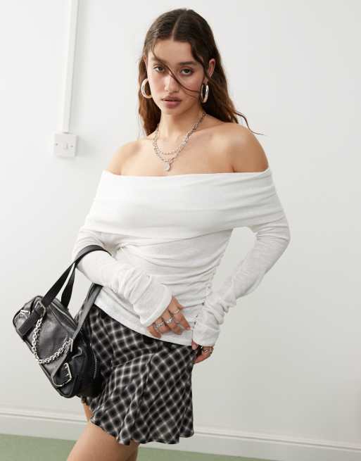 Weekday - Dani - Råhvid semitransparent asymmetrisk langærmet bardot-top