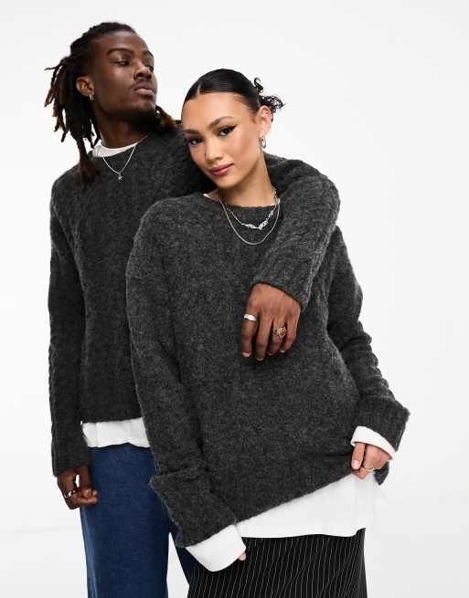 Weekday - Daniel - Unisex - Kabelstrikket og mørkegrå trøje i uldblanding - Kun hos ASOS