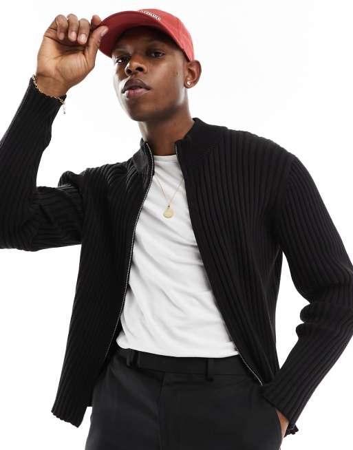 Weekday - Derek - Smal cardigan med gennemgående lynlås i sort ribstrik