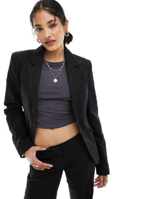 Weekday - Esma - Sort blazer i jacquard med prikker - Del af sæt