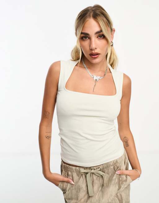 Weekday - Esti - Råhvid tanktop med firkantet hals