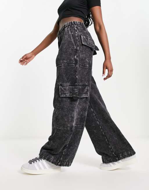 Weekday Extra - Forvaskede sorte cargo-joggingbukser - Del af sæt