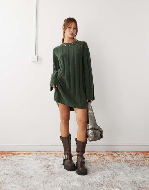 Weekday - Fiona - Mørkegrønmeleret minikjole i chunky ribstrik - Kun hos ASOS