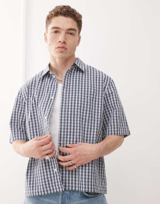 Weekday - Franco - Blåternet og oversized skjorte med korte ærmer