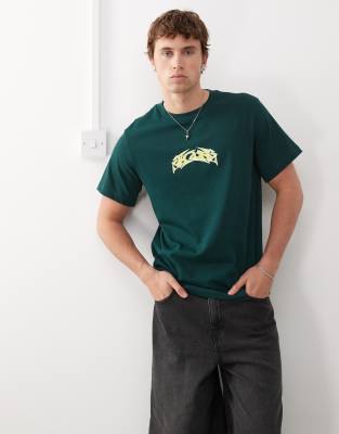 Weekday - Great - Grøn T-shirt med grafisk print i firkantet pasform