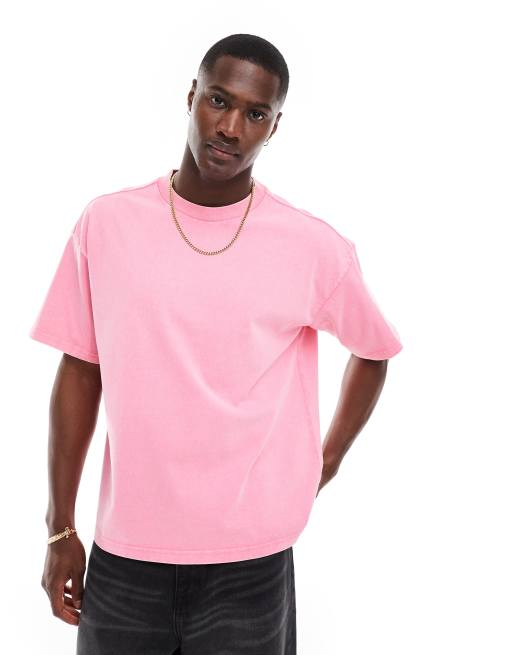 Weekday - Great - Vasket pink T-shirt i firkantet pasform
