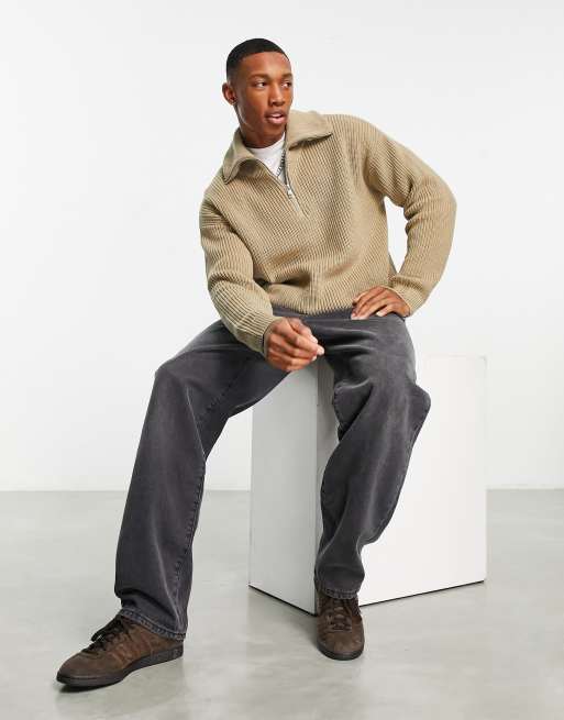 Weekday - Harry - Strikket beige trøje med kort lynlås