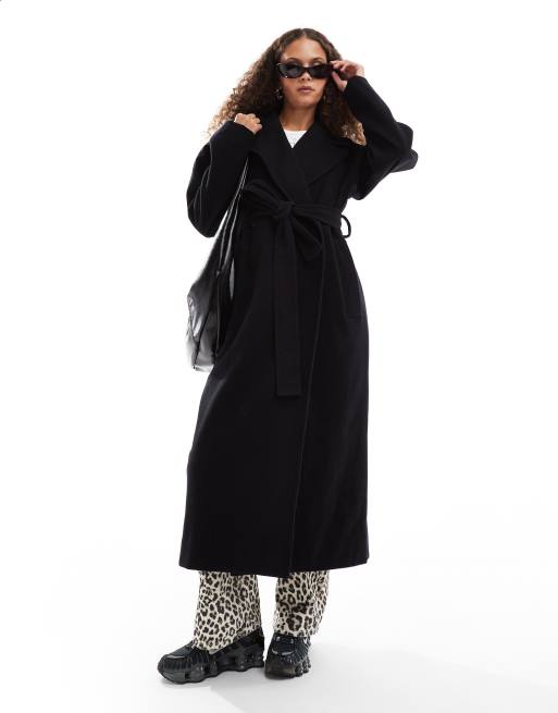 Weekday - Kia - Oversized frakke med bindebånd i taljen i sort uldblanding