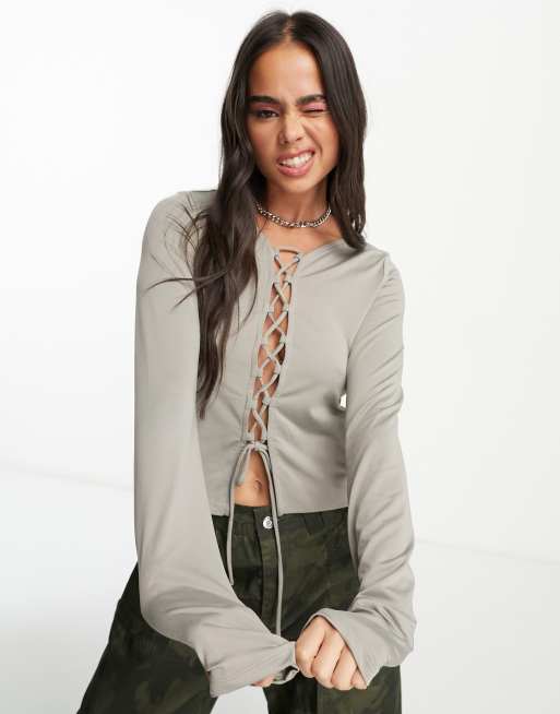 Weekday - Langærmet grå top med bindefront