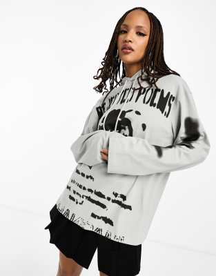 Weekday - Langærmet top med hætte og grafiske print i grå