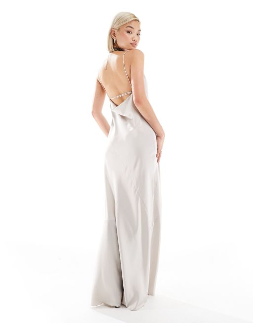 Weekday - Lava - Beige slip-midikjole med sømdetaljer i satin