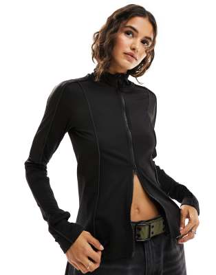Weekday - Lionella - Langærmet sort top med lynlås og kantdetaljer