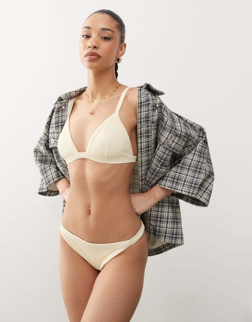 Weekday - Lysegul og ribbet trekantsbikinitop