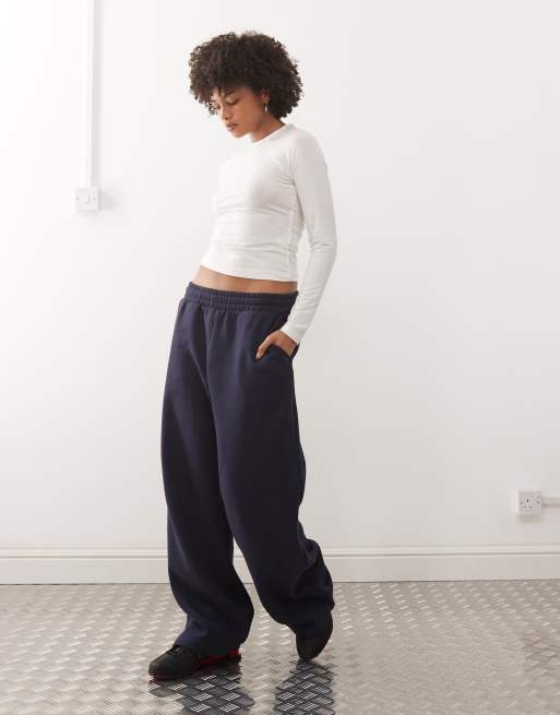 Weekday - Marineblå joggingbukser med vide ben i kraftig jersey