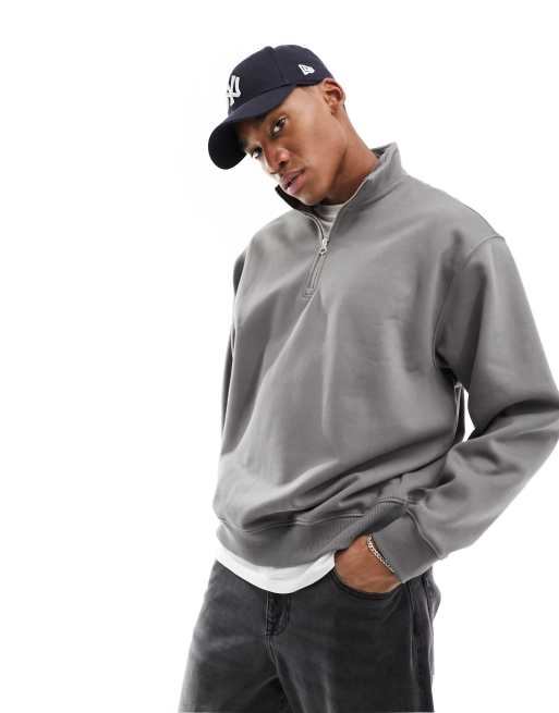 Weekday - Mellemgrå afslappet kraftig sweatshirt med halv lynlås i jersey