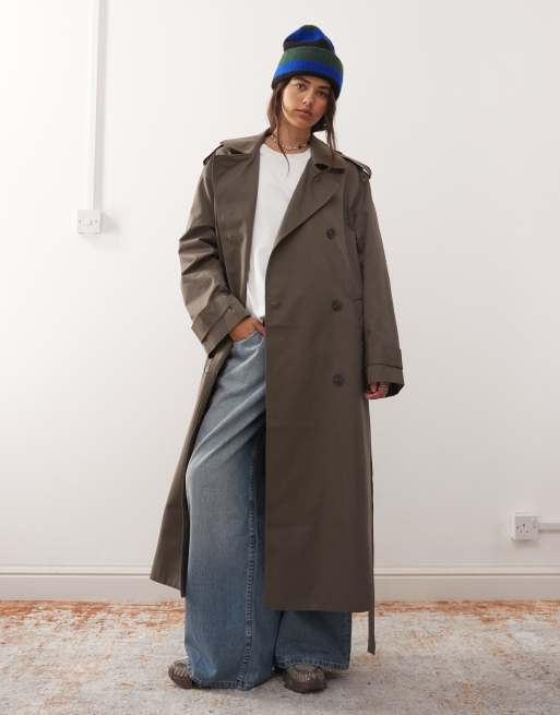 Weekday - Mørk muldvarpebrun oversized trenchcoat