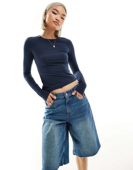 Weekday - Mørkeblå T-shirt med lange ærmer i slim fit