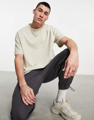 Weekday - Oversized t-shirt i beige - Del af sæt