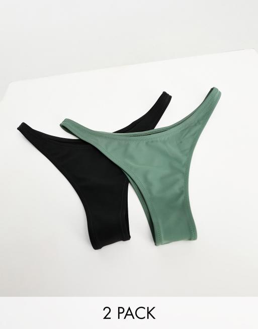 Weekday - Pakke med 2 par små brasilianske bikinitrusser i sort og kaki-grå