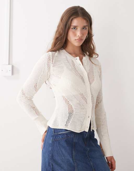 Weekday - Råhvid strikket slimfit-cardigan med hulmønster
