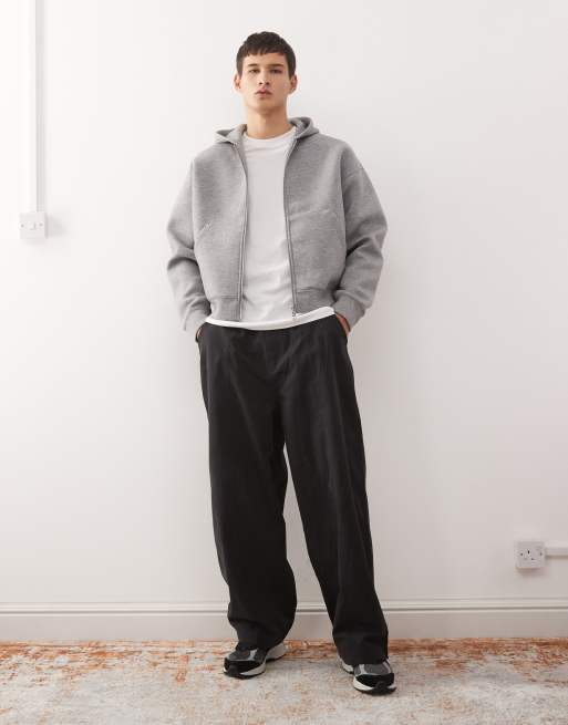 Weekday - Simon - Gråmeleret sæt i scubamateriale med joggingbukser og hættetrøje med lynlås