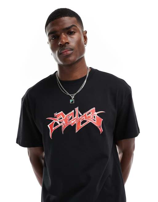 Weekday - Sort oversized T-shirt med rødt grafisk print
