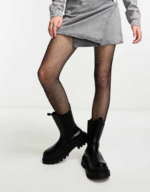 Weekday - Sorte fiskenetsstrømpebukser med sølvfarvede rhinsten