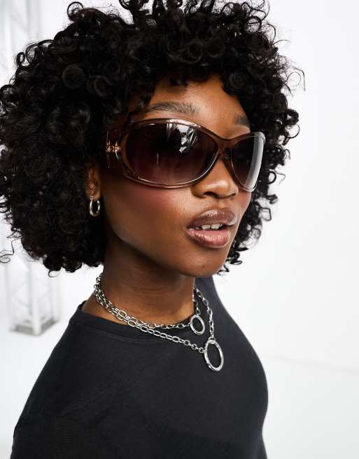 Weekday - Strike - Store, runde solbriller med udskæringer i lysebrun
