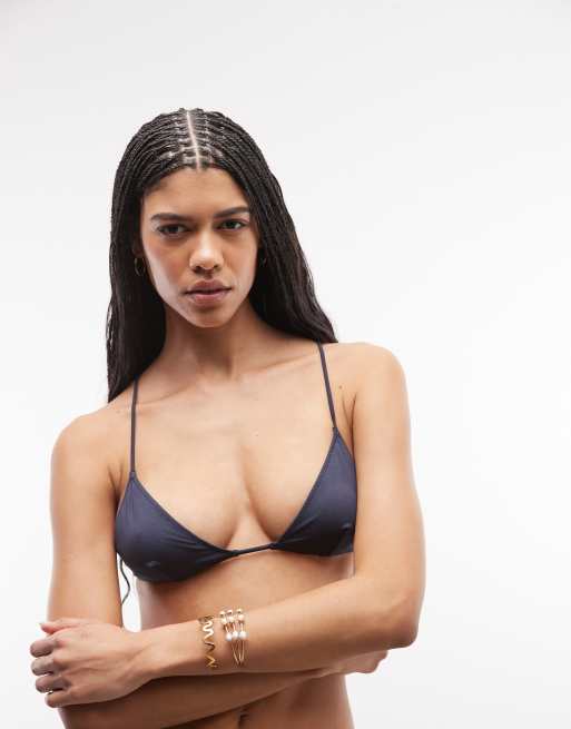 Weekday - Støvet blå metallisk bikinitop med racerryg - Del af sæt