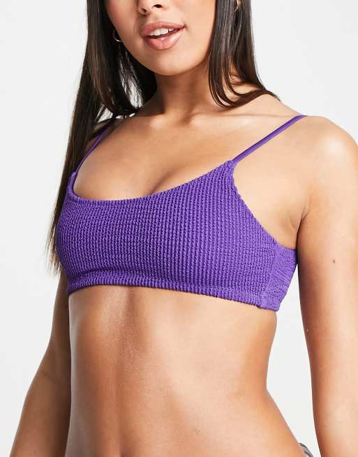 Weekday - Sunny - Ribstrikket bikinitop med dyb, rund hals i lilla