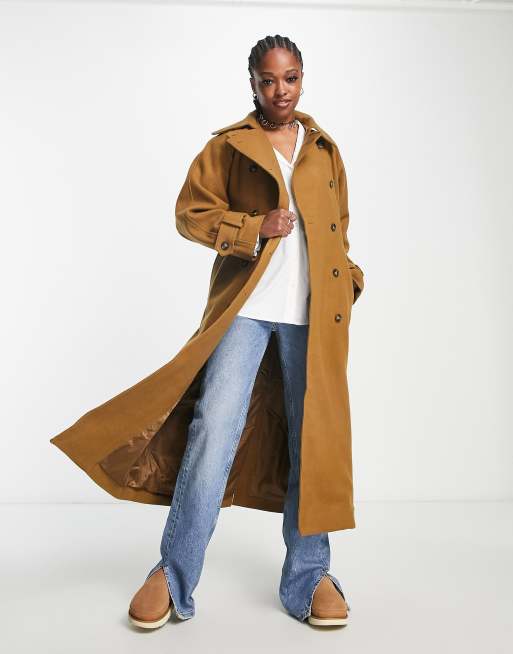 Weekday - Travis - Brun trenchcoat i uld med bindetalje
