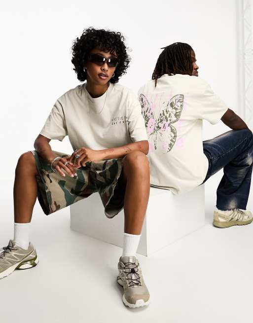 Weekday - Unisex - Beige T-shirt med stor grafik - Kun hos ASOS