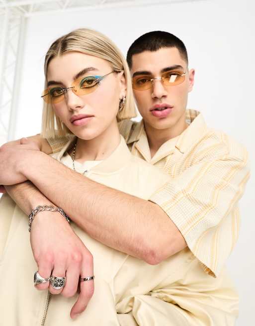 Weekday - Unisex Catch - Sølvfarvede runde solbriller med gule glas