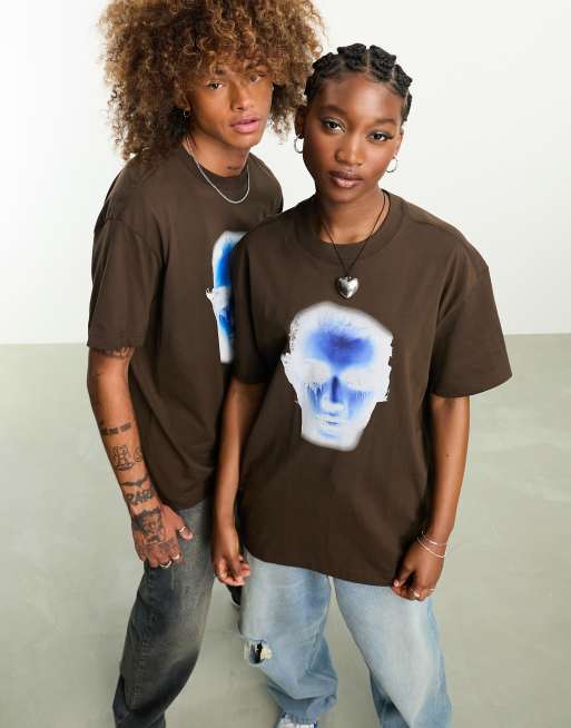 Weekday Unisex - Oversized brun T-shirt med grafisk print - Kun hos ASOS