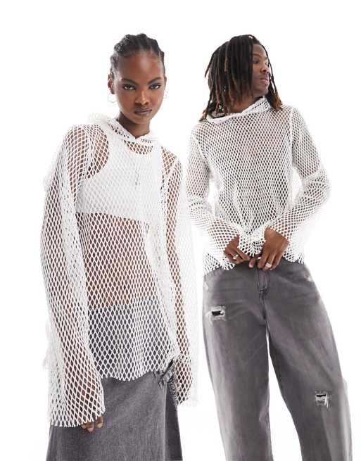 Weekday - Unisex - Råhvid hættetrøje i netstof - Kun hos ASOS