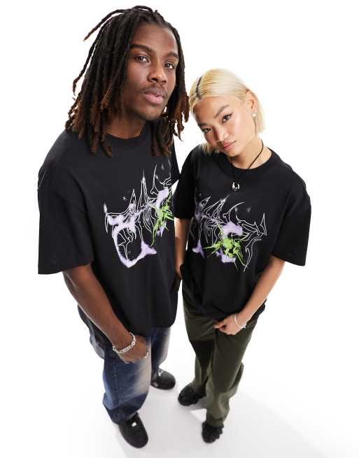 Weekday Unisex - Sort oversized T-shirt med grafisk print - Kun hos ASOS