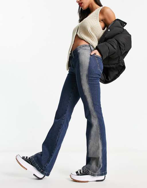 Weekday - Utopia - Blå lavtaljede jeans med svaj og forvaskede paneler