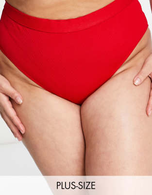 Wolf & Whistle Curve - Højtaljede, ribstrikkede bikinitrusser i rød - Kun hos ASOS