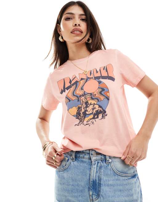 Wrangler - Lyserød T-shirt med 'Cowboys'-logoprint på brystet